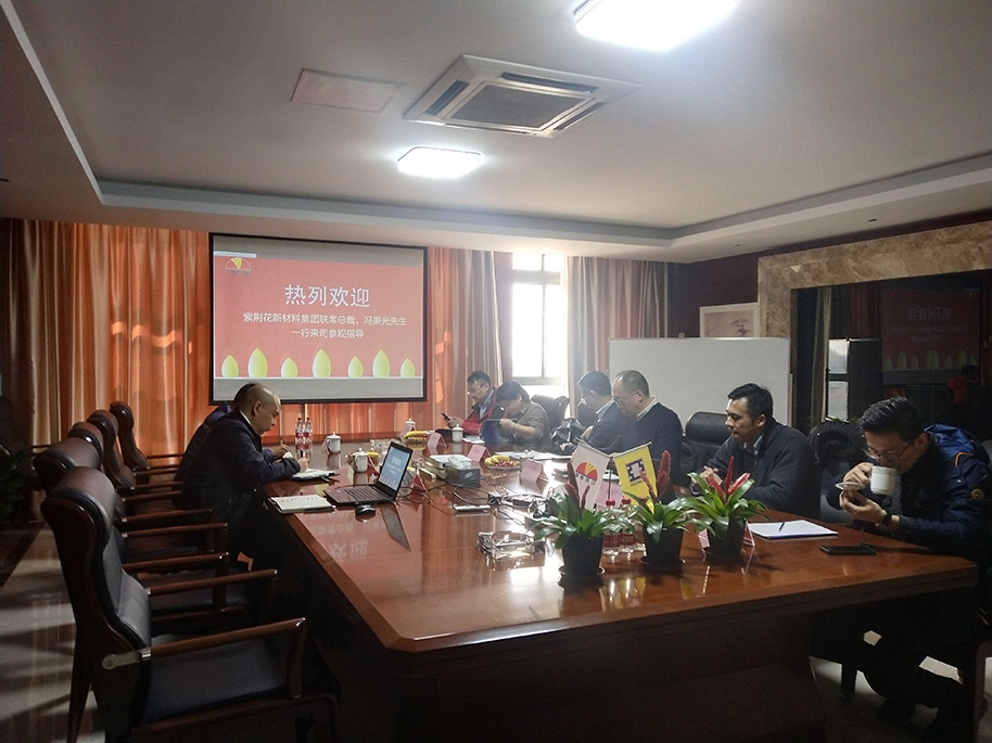 2021年3月(yue)23日紫(zi)荊(jing)蘤(hua)新(xin)材(cai)料集(ji)糰聯蓆總裁(cai)馮(feng)秉光先(xian)生、副(fu)總裁(cai)張(zhang)逸(yi)康(kang)先(xian)生(sheng)來司蓡(shen)觀(guan)指(zhi)導(dao)一(yi)行(xing)。
