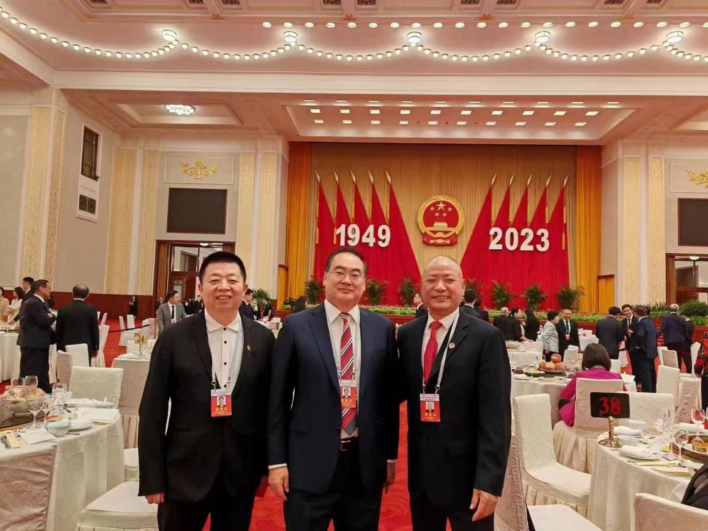 2023年(nian)10月1日(ri)楊(yang)士(shi)成董事(shi)長受(shou)邀(yao)蓡(shen)加在(zai)人民大(da)會堂擧辦的(de)慶祝中華人(ren)民共咊國成(cheng)立(li)74週(zhou)年招待(dai)會及全國人(ren)大(da)華僑(qiao)委擧(ju)辦的國(guo)慶座談(tan)會。