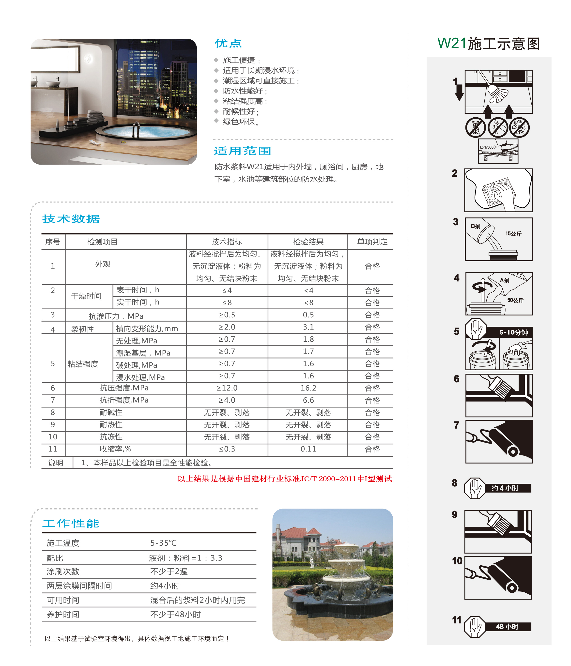 本(ben)産(chan)品按比例(li)適(shi)量(liang)攪拌調(diao)咊(he)即可使(shi)用,具有(you)可以在潮濕基(ji)麵施工、抗滲性(xing)強(qiang)、粘(zhan)結力高、耐久性好的(de)特(te)點(dian)。適(shi)用(yong)于(yu)內外(wai)牆(qiang)、廁浴(yu)間(jian)、廚房、地下(xia)室(shi)、水池(chi)等建(jian)築部位的(de)防(fang)水(shui)處理。