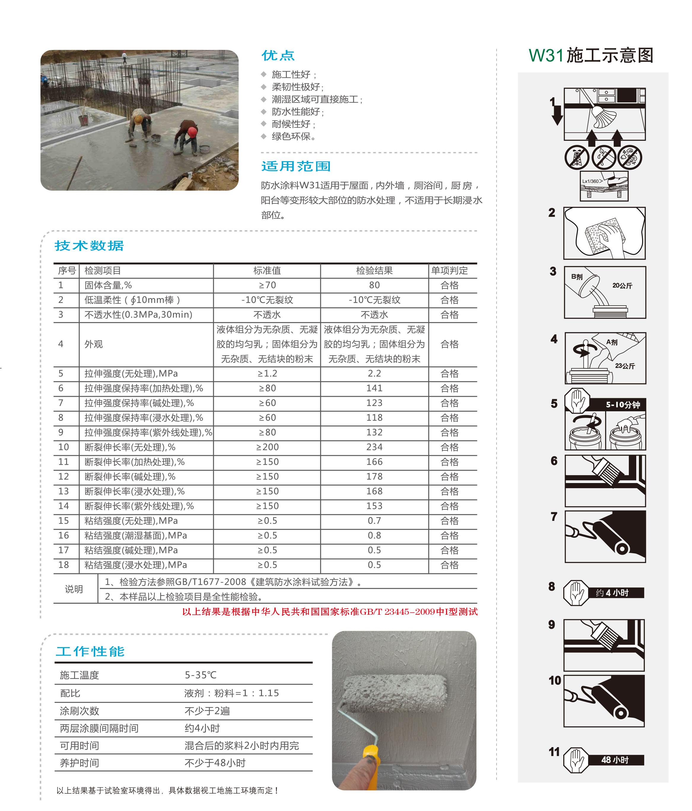 本(ben)産(chan)品(pin)按比例(li)適量(liang)攪(jiao)拌調咊即(ji)可使用(yong),具有(you)可(ke)以在(zai)潮濕基麵施(shi)工(gong)、極(ji)好的柔韌性(xing)、抗(kang)滲(shen)性強、粘結(jie)力高、耐(nai)久(jiu)性好的(de)特(te)點(dian)。適(shi)用(yong)于(yu)屋麵(mian)、內外牆(qiang)、廁(ce)浴(yu)間(jian)、廚(chu)房(fang)、陽檯等變(bian)形較(jiao)大的部位的防(fang)水處理(li)。